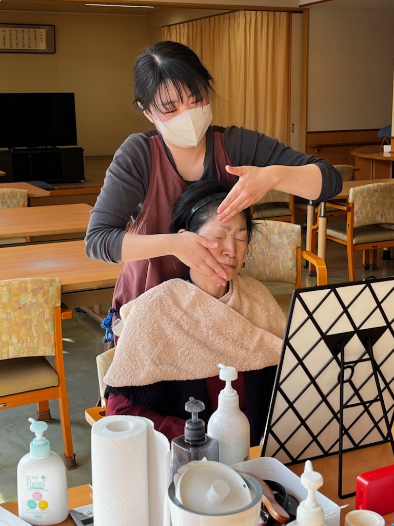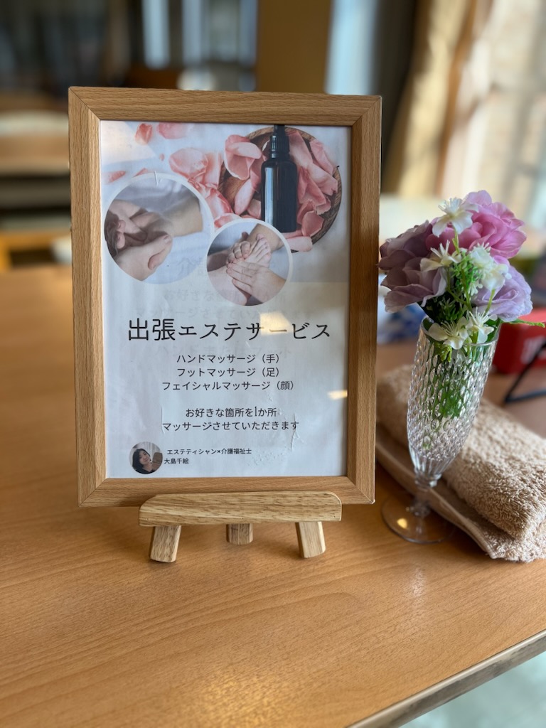 11/27 ESTHETICSALON-yolo 大島千絵先生をお招きし、先着10名介護エステ(フェイシャル、ハンド、フット)を体験しました。皆様、大満足で毎日来てほしいと言われる方も(;^ω^)